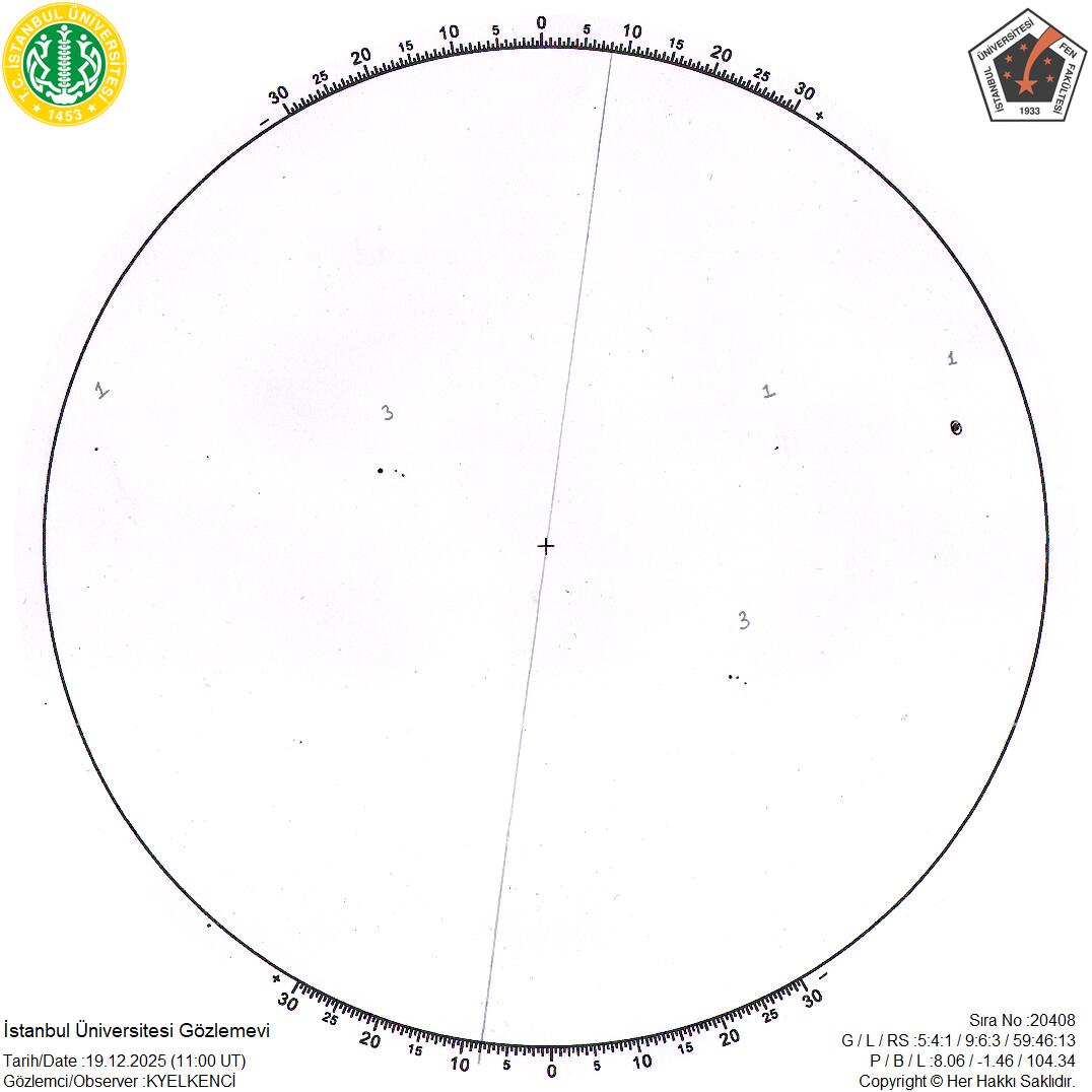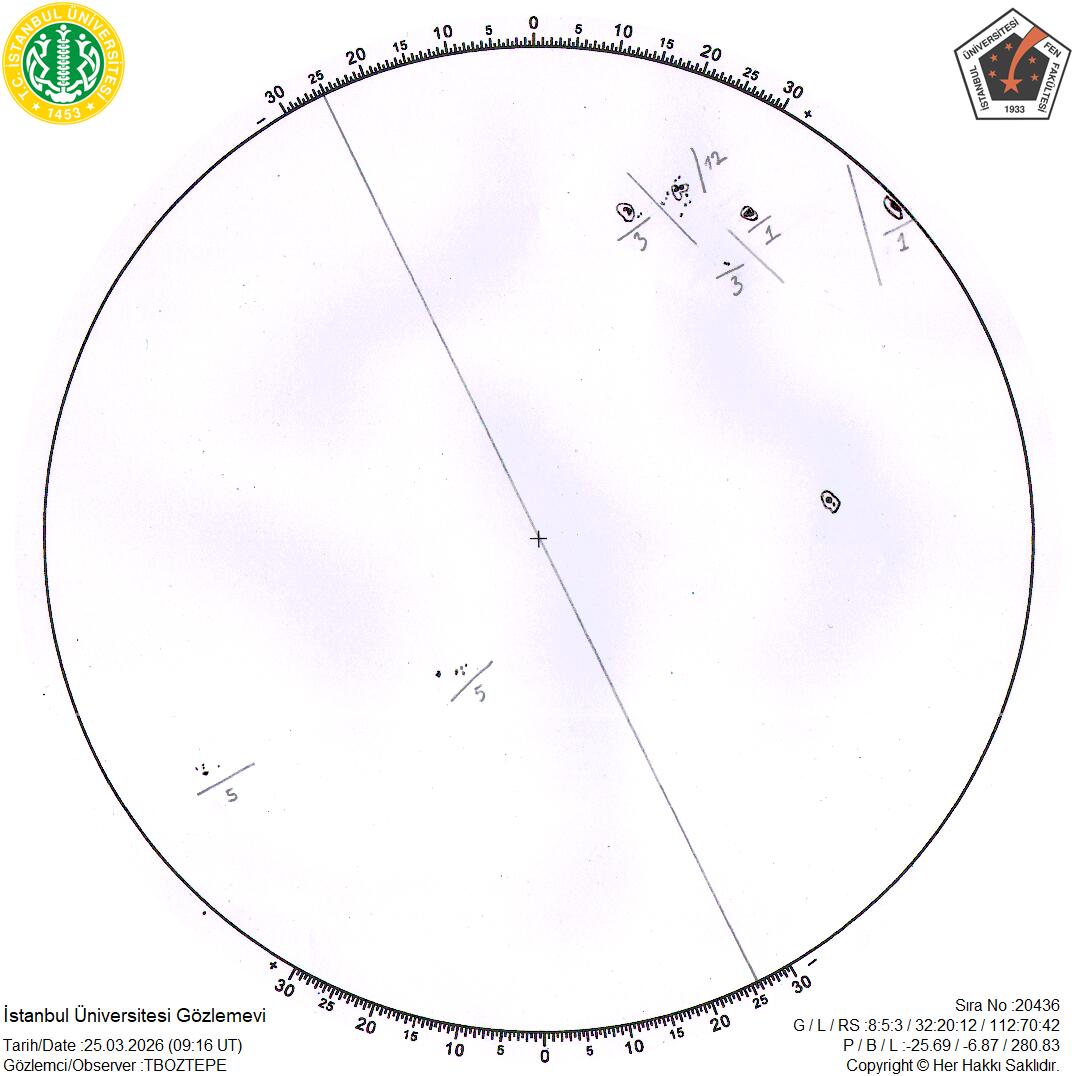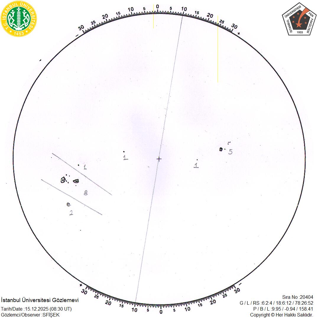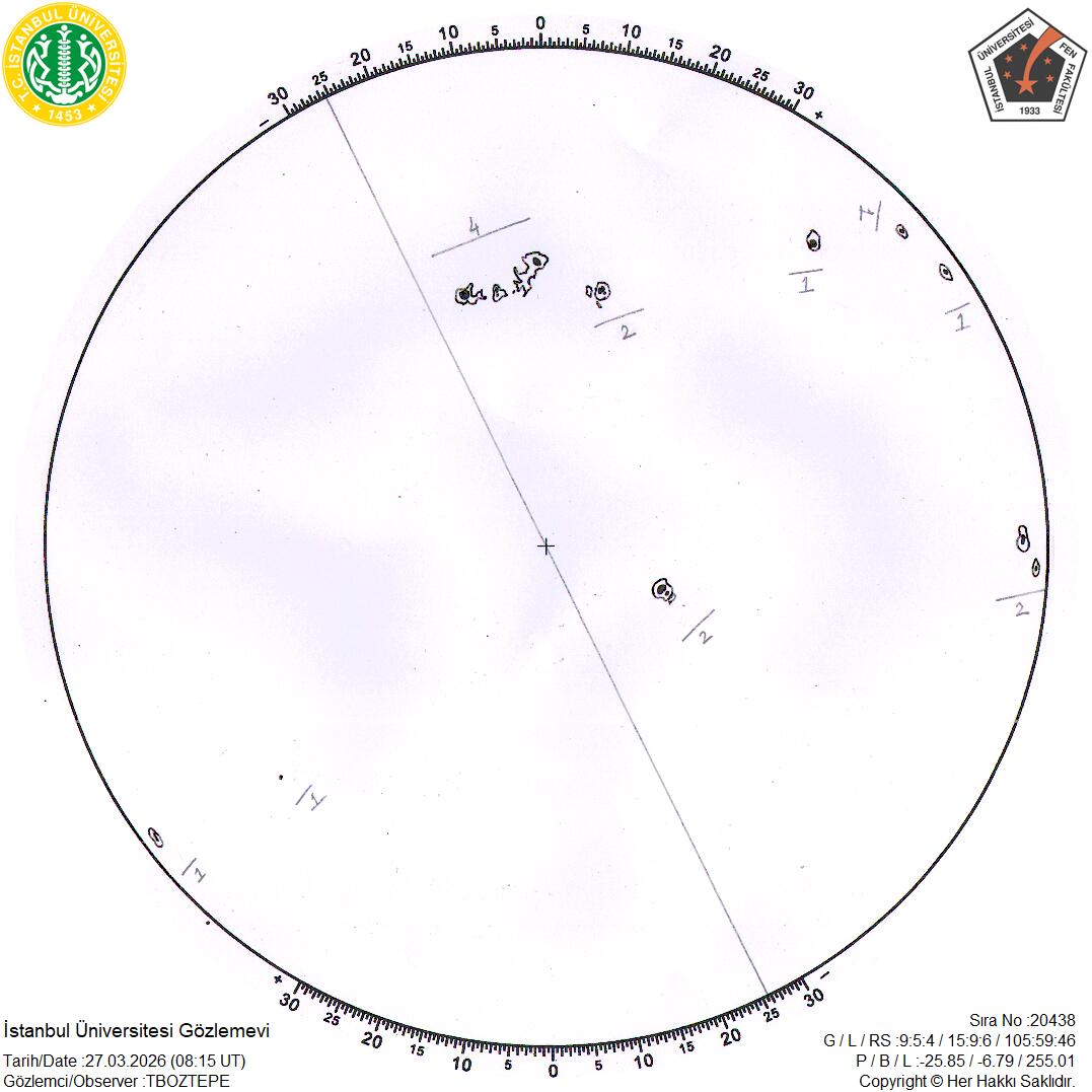Aylık Güneş Leke Sınıflandırması ve Koordinatları için tıklayınız. Click here for the monthly Sunspot Classification and Coordinate data.