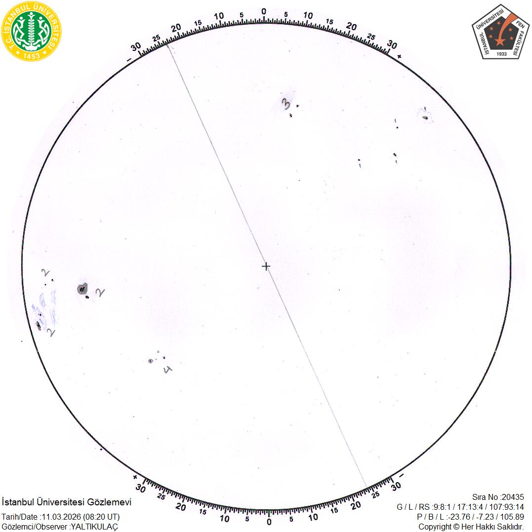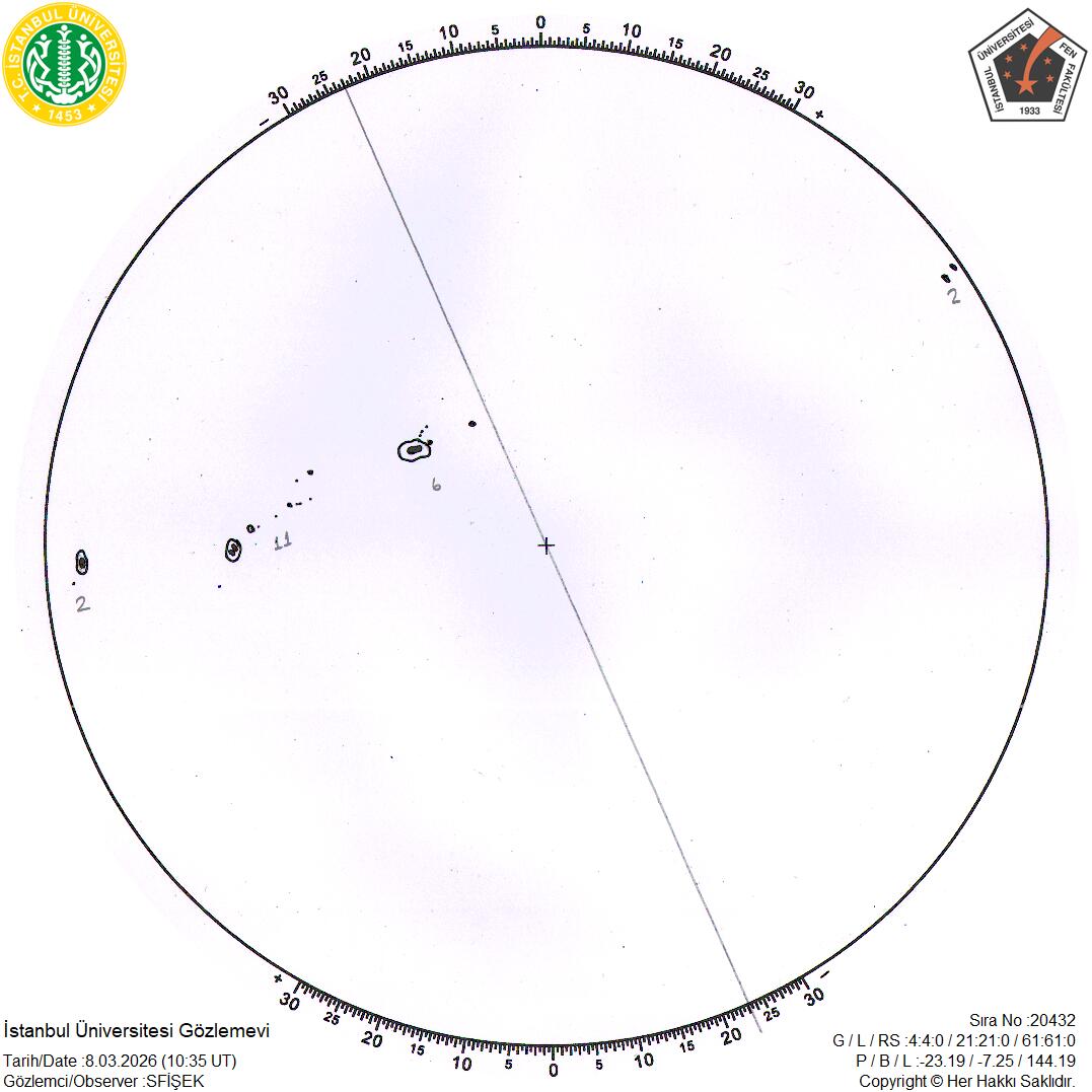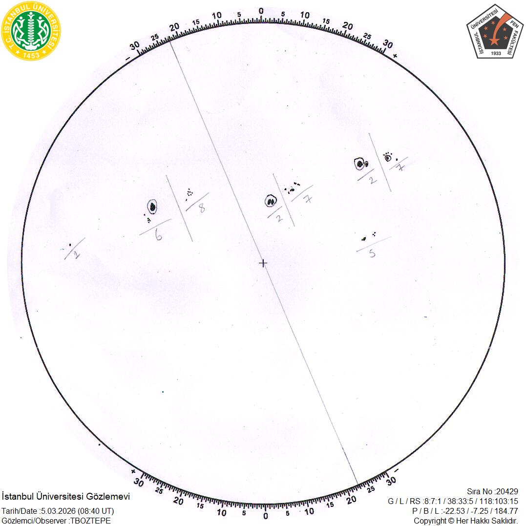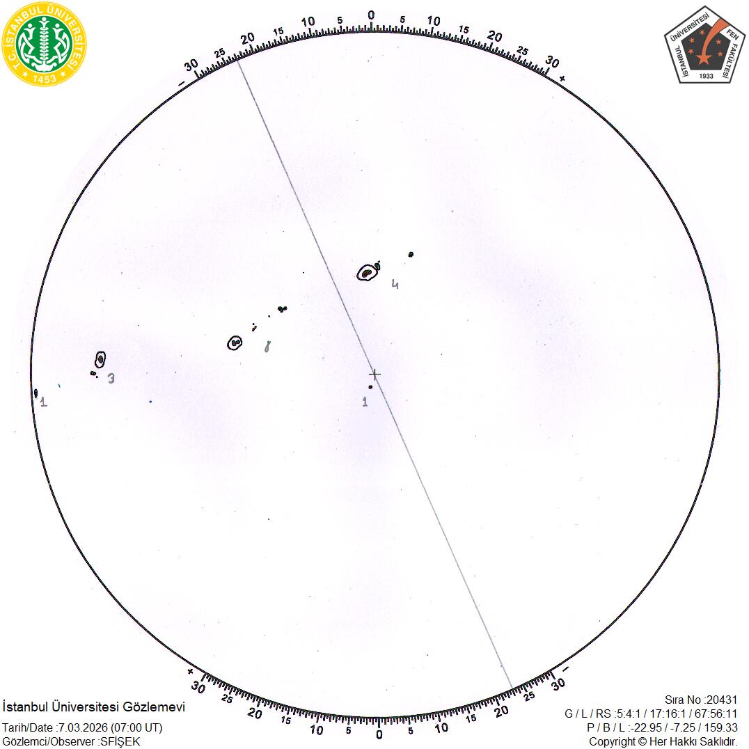 If you use Istanbul University Observatory sunspot data in your research work, following acknowledgement would be appreciated:“This research was made help of Istanbul University Observatory Sunspot Observations.”