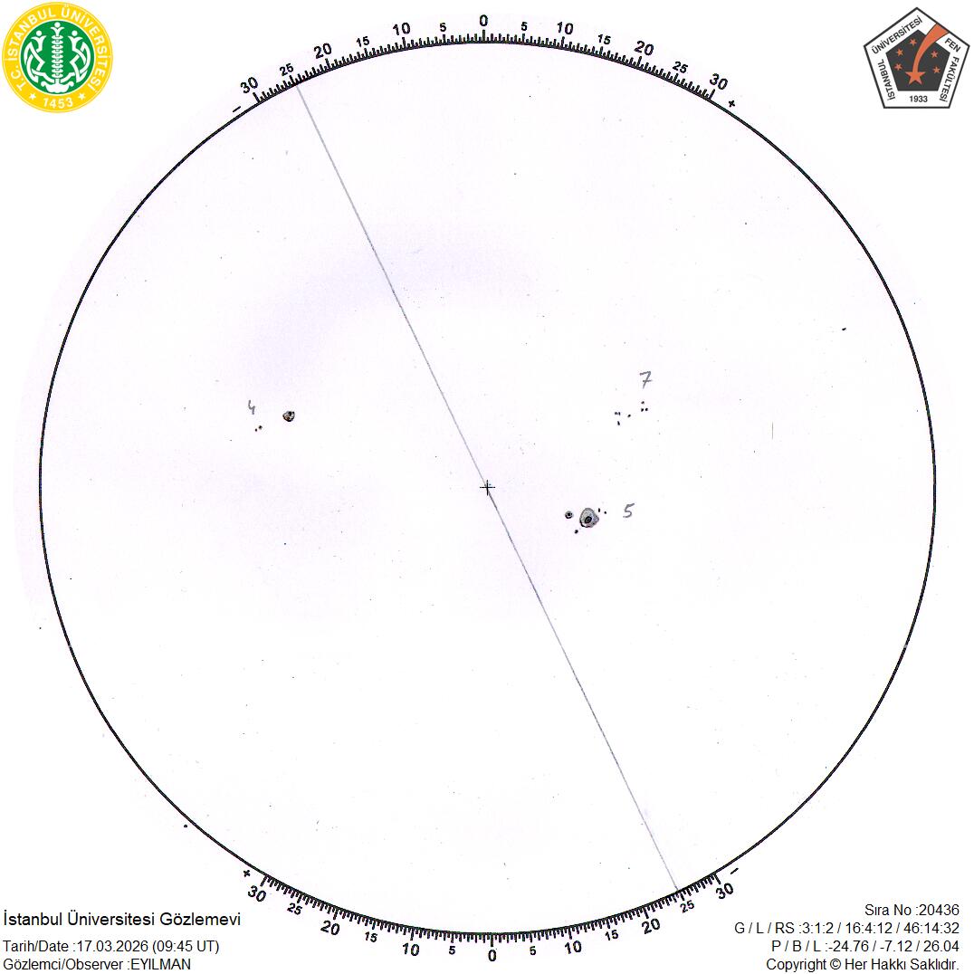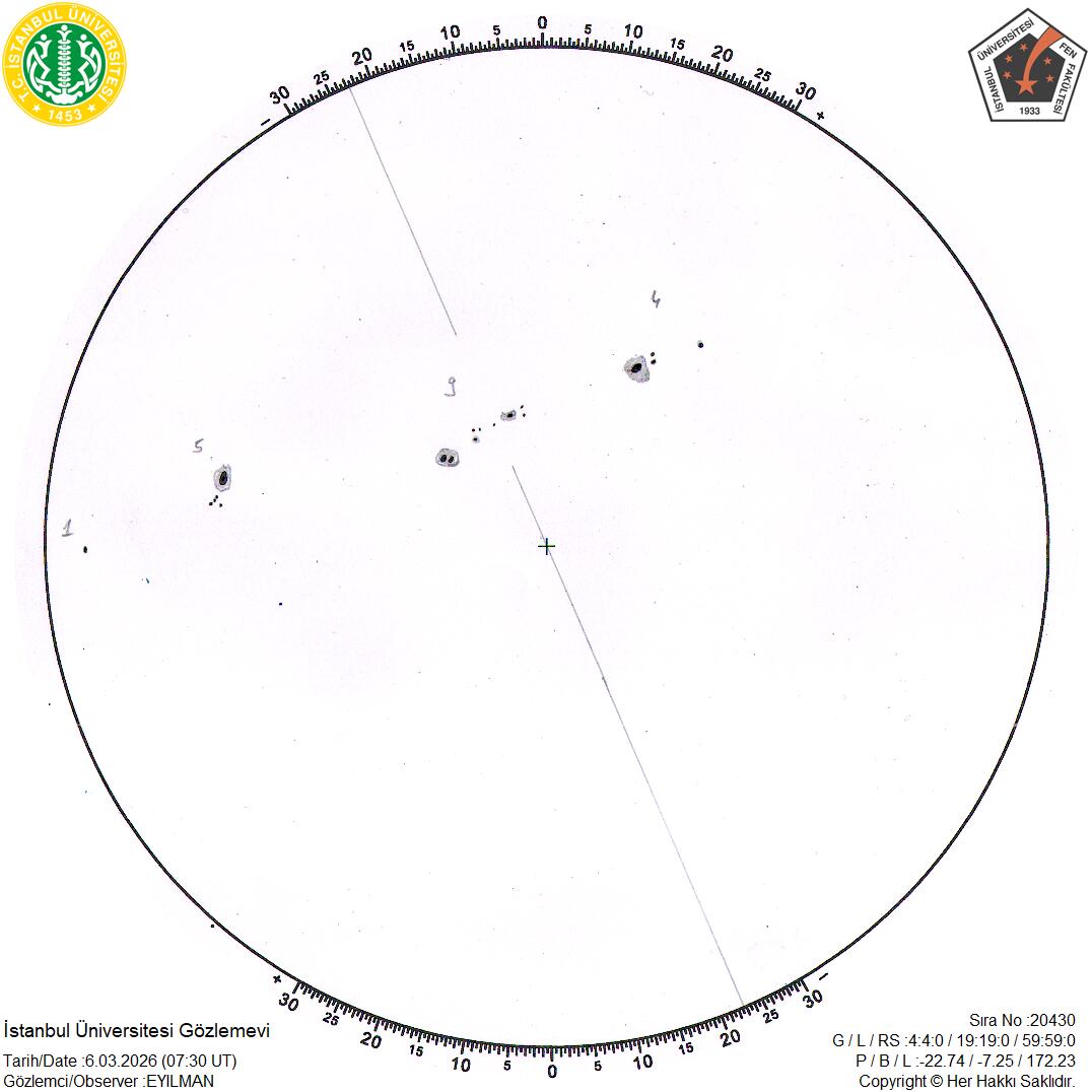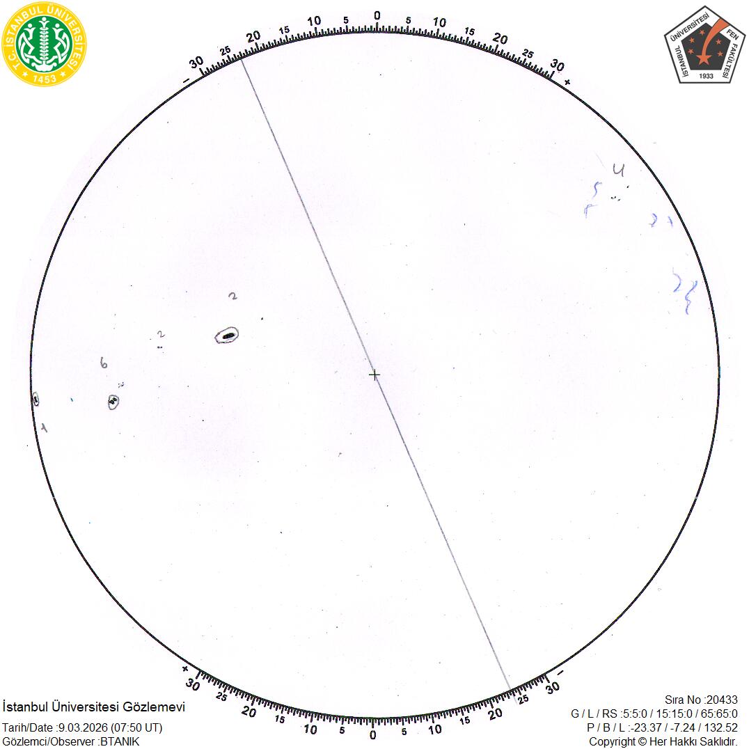 Eğer çalışmalarınınzda İstanbul Üniversitesi Gözlemevi güneş lekesi verilerini kullanırsanız, çalışmanıza aşağıdaki açıklamayı eklemenizi rica ederiz: “Bu çalışmada İstanbul Ünivertesi Gözlemevi Güneş Leke Gözlemleri’nden faydalanılmıştır.”