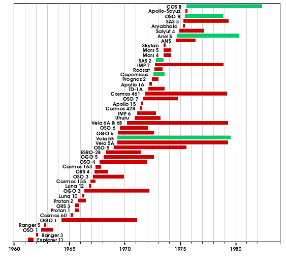 Bu güçlükten sonra araştırmacıların çektiği en büyük zorluk, iyi bir resim yapmak için gereken çok sayıda fotonu bulmak olmuştur. Gama-ışın astronomisini zor kılan en önemli ikinci sebep evrende diğer dalgaboyları ile karşılaştırınca çok az sayıda gama-ışın fotonu bulunmasıdır. Birkaç örnek vermek gerekirse; Yengeç atarcası, gama-ışın dalgaboyunda nispeten parlak bir kaynak olmasına rağmen, yayınladığı her 103 optik fotona karşılık bir gama-ışın fotonu yayınlar. Bu alanda en başarılı teleskoplardan biri olan EGRET hazırladığı tüm gökyüzü haritası için tam 18 ay boyunca açık kalmıştır yani bu teleskopla bütün gökyüzünün resmini çekebilmek için gereken poz süresi 18 ay olmuştur. Yörüngeye çıkan ilk gama-ışın teleskopu 1961 yılında fırlatılan Explorer-XI dir. Bu uydu ise sadece 100 kozmik gama-ışın fotonu algılayabilmiştir. Bu gama-ışınları da gama-ışın zemin ışınımıdır. Bu zemin ışınımı, kozmik ışınların yıldızlar arası gaz ile etkileşmesi gibi sebeplerle meydana gelir. Dikkate değer sayıda gama-ışını ilk olarak, 1967’de fırlatılan OSO-3 uydusundaki gama-ışın teleskopunca tespit edilmiştir. Bu uydu zemin ışınımından farklı olarak 621 olay kaydetmiştir. Gama-ışın astronomisinin gözlemsel kısmı en büyük aşamayı, SAS-2 (1972) ve COS-B (1975-1982) uydusu ile kaydetmiştir. Bu iki uydu yüksek enerjili evrenin o zamana kadar hiç görülmemiş görüntülerini sağlamışlardır. Bu uydular, zemin ışınımı hakkında daha önceki bulguları doğrulamışlar, gama-ışın dalgaboyundaki gökyüzünün ilk kez detaylı bir haritasını çıkarmışlar ve bazı nokta kaynakları tespit etmişlerdir. Ancak bu cihazların düşük çözünürlüğü bu nokta kaynakların tam tanımlamasını yapmayı güçleştirmiştir. Gama-ışın astronomisinin en büyük keşiflerinden biri, 1960’ların sonu 1970’lerin başında, soğuk savaş döneminde ABD ve Sovyetler Birliğinin birbirlerinin nükleer testlerini tespit etmek üzere uzaya gönderdikleri uydular ile yapılmıştır. Bu uydular her iki devletin istihbaratına da katkı sağladılarsa da en büyük katkıyı uzayda da benzer patlamaların olduğunu göstererek gama-ışın astronomisine yapmışlardır. Bu patlamalar bugünde takip edilmektedir fakat daha önceden belirlenemeyen yerlerde ve çok kısa sürelerle ortaya çıkıp kaybolmalarından dolayı haklarında hala genel kabul görmüş bir model bulunmamaktadır. 1977’de Nasa, Great Observatories programına bir gama-ışın uydu-teleskopu da eklediğini duyurmuştur. Compton Gama-Işın Teleskopu (Compton Gamma-Ray Observatory, CGRO) 1970 ve 1980’lerin teknolojileri kullanılarak hazırlanmış ve 1991 yılında fırlatılmıştır. Uydu 2000 yılının Haziran ayında jiroskoplarından birinin arızalanması sebebiyle düşürülene kadar yüksek enerjili evren hakkında hala üzerinde çalışılan pek çok bilgi sunmuştur. Ancak Compton uydusundaki teleskoplar, 1970’lerde dizayn edildikleri için kaynakların, radyo, optik ya da x-ışın teleskopları kadar iyi resimlerini alamadılar. Bu arada ise gama-ışınlarını algılamak için yeni pek çok yöntem ve kullanılmak üzere yeni pek çok materyal geliştirilmiştir. Bu yeni teknolojinin kullanıldığı ve yakın tarihlerde fırlatılan ilk uydu ESA tarafından geliştirilen INTEGRAL uydusudur. Geliştirilmekte olan bir diğer teleskopta (2006 yılında fırlatılması planlanıyor) Gama-Işın Geniş Alan Teleskopu GLAST’tır (Gamma-ray Large Area Space Telescope). GLAST şu andaki teleskoplardan çok daha yüksek çözünürlükte tüm gökyüzü haritaları hazırlayacaktır. Bu gibi teleskoplar bilim adamlarına yüksek enerjili evreni daha temiz ve daha detaylı bir şekilde görme imkanı verecektir.